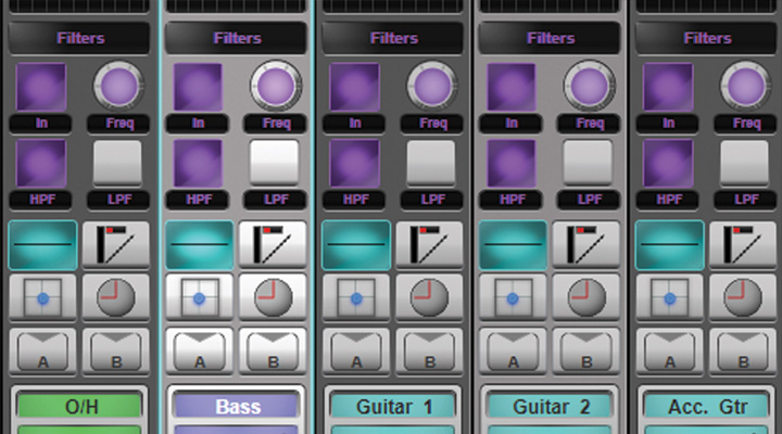 Super-Q还显示到达混音或从混音出来的发送电平,从而进行快速精确的调整,无论是在通道视图还是混音中央视图下。发送量可在推子上方的编码器中调整,也可以翻转到推子上进行调整。