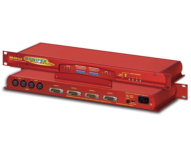 Sonifex > RB-DA4x5 /uploadfile/2018/0627/20180627101828210.jpg RB-DA4x5 RB-DA4x5 4路输入20路输出的音频混音/分配器 4路输入20路输出的音频混音/分配器 RB-DA4x51U是1U大小,机架式安装。它是一款合成的分配放大器和混合器 RB-DA4x51U是1U大小,机架式安装。它是一款合成的分配放大器和混合器 TAG: 2019.04.12 Sonifex在2012年BEV展会 2019.04.12 Sonifex在2009年NAB展会 2019.04.12 David Murphy教你使用Sonifex调音台 产品详情 相关视频 资源下载 RB-DA4x51U是1U大小,机架式安装。它是一款合成的分配放大器和混合器。它的XLR母插上有4个单声道模拟音频输入,而15路D-type连接头上有4组输出,每组有5个。每个输出组都有一个5路的前面板DIP开关,可用于选择发送给输出组的输入。这样可以让4个输出的每一个,或1个1kHz 0dBu的声音与输出组进行混音。 2019.04.12 Sonifex在2012年BEV展会 2019.04.12 Sonifex在2009年NAB展会 2019.04.12 David Murphy教你使用Sonifex调音台 产品介绍:
