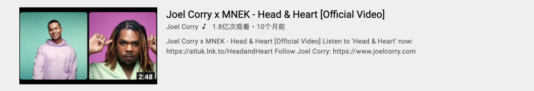之后,他又推出单曲《Lonely》,同样突破了白金销量,最高排名位列榜单第 4。紧接着,一首与 MNEK 合作的单曲《Head & Heart》爆火,让 Joel 夺得了他在英国的首个冠军,并且霸榜长达 6 周之久,这也是官方发布的 2020 年榜首保持时间最长的纪录。