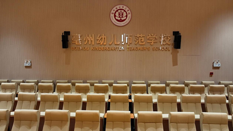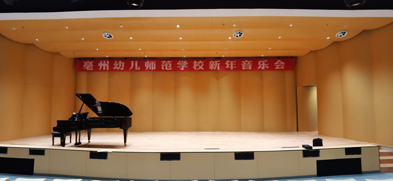 安徽省亳州幼儿师范学校新建音乐厅位于校园内北门处,该教学实训室参照小型音乐厅建设设计,座位设计211座。