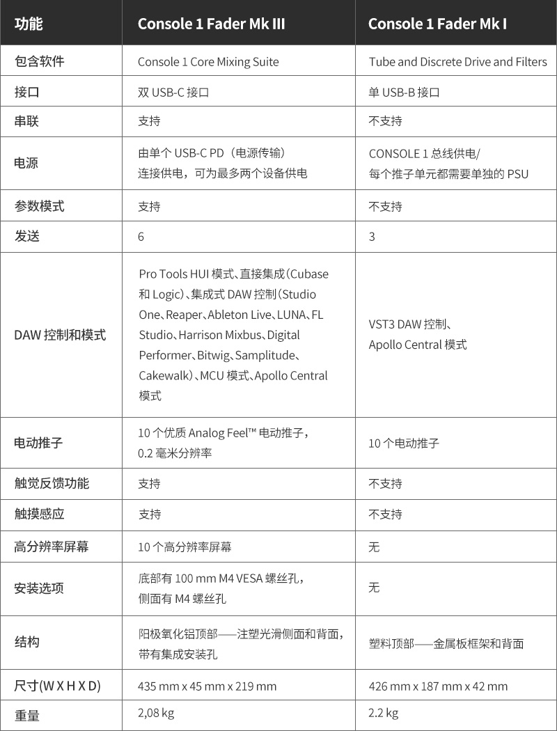 Console 1 Channel Mk III & Console 1 Fader Mk III 规格