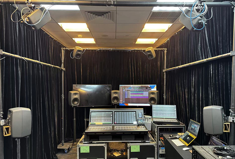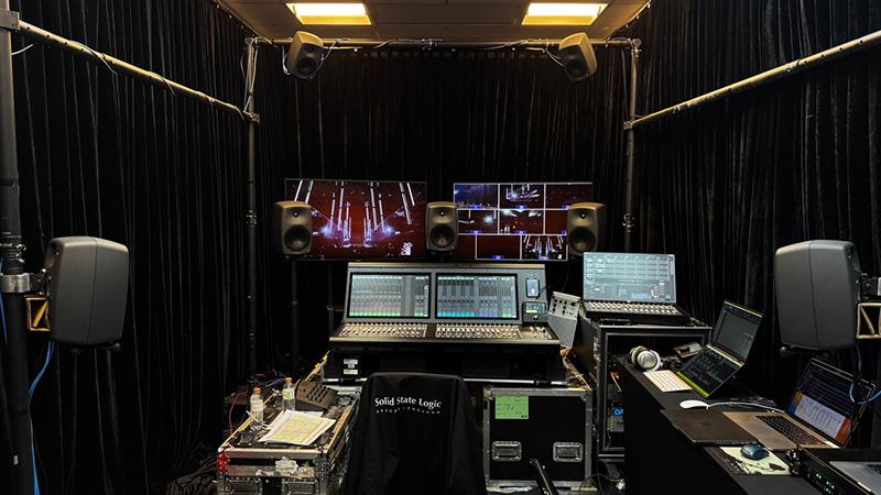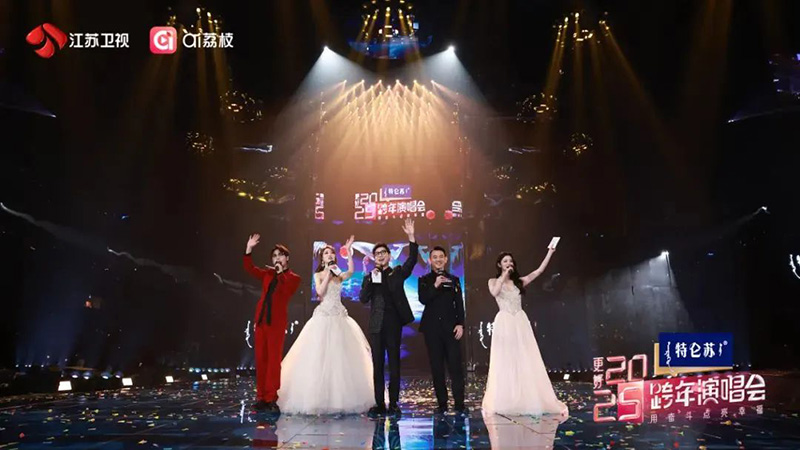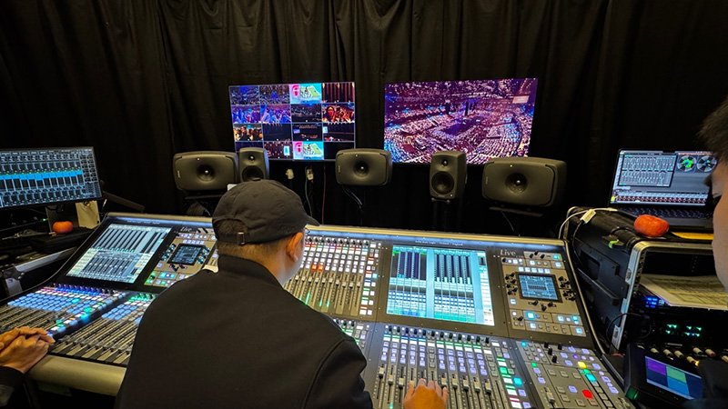 新闻中心|2025/01/02 江苏卫视2025跨年演唱会直播系统解析 实力歌手领衔,先进技术领先,唯美艺术领鲜。2024年的最后一晚,《特仑苏更好2025江苏卫视跨年演唱会》以大气磅礴的《天地龙鳞》启幕,用温暖质朴的《回春天》迎接新年。 多年来,全开麦的实力真唱一直是江苏卫视跨年演唱会最独树一帜的标签。今年,晚会继续扩列“荔枝朋友圈”,汇聚华语乐坛实力唱将与人气歌手,打造独一无二的年终舞台“记忆”,将“亚洲顶秀”推向新高度。 除了经典的旋律、实力的演出,荔枝跨年还大量运用前沿视听技术,先进强大的OB系统,给观众带来别具一格的感官体验。 5.1环绕声OB间 5.1 环绕声OB间主要完成高清频道的5.1播出终混,通过Dolby E编码传输回南京。大部分电视观众都是收听的这个系统制作的声音,需要满足并兼容机顶盒的解码输出2.0立体声给电视机喇叭,以及满足其他有条件的家庭,通过外置AV解码器输出5.1环绕声给家庭影院音响。同时,还要考虑现今更多的移动端收听方式,很多观众会通过iPad或者手机来观看晚会,立体声的下变换兼容性是传输通路上的重点关注对象。 播出系统依旧沿用之前的系统设计,采用SSL Live L550 + L350的架构,4台ML 32.32接口箱放置在舞台口,通过SSL BlackLight 专属协议光缆,冗余连接到OB间。这样的搭配已经连续稳定工作了7年,充分证明了SSL的品质保证。两个台面的扩展模式,给了混音师更多的操作空间和视觉反馈,适合双调音师的模式,两人互不干扰。 监听系统无需多言,选择了同轴系列的8351音箱,在监听环境不完美的条件下,尽可能利用音箱自身的智能调节功能,补偿频响和距离上的延时。真力音箱最佳的一致性和稳定的声音表现,一直是所有调音师信赖的最佳拍档。 本次系统的亮点,便是核心矩阵DirectOut Prodigy MP,通过机身MADI和内置Dante卡可以与SSL Live台子互通,同时将PGM最终混音信号连同Dolby E,利用光纤MADI传输给转播车。Prodigy系列具备多重自动应急倒换能力,任意信号端口、任意时钟信号,都可以根据节目情况设置成不同倒换模式,让你在直播中可以无缝的切换备份。 方便的Globcon软件还可以在网络所及的任何地方,用电脑方便的遥控和监测矩阵内的信号,让你对系统脉络全权掌控,一目了然。在这次系统设计中,内置SoundGrid卡用于外部Waves效果服务器的连接。 负责录音的多轨音频工作站依然是 Avid ProTools HDX系统,128声道通过HD MADI以及MTRX接口来收录。 环绕声监听控制器采用 TACSYSTEM VMC-102,其高清晰的触摸屏尺寸适中,可以清楚的显示所有信号源按钮,结合部分实体按键,调音师可以快速的切换不同信号源、不同音箱组来对比监听。 对于电视播出,最大的挑战就是要实时控制好播出的峰值电平和响度,任何的过载都可能导致直播的信号受影响或失真。尤其是对于多声道的直播,要监测和管控的信号数量已经比原来立体声播出有很大改变,那么响度及电平监测能手——RTW TM9便是我们解决此问题的最佳选择。 直播的调音师其实是很辛苦的,既要关注节目艺术质量,还要听着通话里舞台端的话筒发放安排、扩声工位的流程协调、导播切换口令、转播车质量控制的反馈等等。RTW可以让调音师在复杂多变的直播流程中,耳朵可能忽略的问题,用眼睛来弥补。真峰值电平、响度数值和范围、相位相关性都可以实时展现在调音师眼前,协助你做出快速判断。 主持人话筒在这类大型场馆的直播中,往往是最难控制的,除了多人talking外,还有现场扩声的串扰,希望电视直播信号更干净就需要有降噪神器了——Cedar DNS 8D人声噪音抑制器,它能同时处理8路信号,可以同时给台上5位主持人,以及其他互动话筒做实时降噪,效果是立竿见影。 三维声OB间 沉浸式音频的直播,目前是各电视平台所热衷的话题,即使目前在接收端还不是很成熟的情况下,各家都在积极探索和尝试。此次跨年演唱会整容庞大,乐队和艺人都是业内最高水平的,再加上江苏卫视的最新“ai荔枝”平台同步面试,制作团队希望给大家更好的沉浸式体验,三维声制作也呼声不断。 三维声OB间使用目前最先进的网络化播出制作平台,SSL SystemT调音台。一张32推子的S400台面,搭配一张灵活的16推子的TCA移动台面。不仅可以做多工位的布局设计,还可以互为备份,让16推子的TCA台面成为S400台面的应急台面。SystemT搭配的处理核心采用了多达800通道的TE2引擎,并采用双引擎镜像模式,多达1024路Dante接入能力。 使用SystemT最大的益处是其原生支持三维声母线和声像定位,让调音师可以实时进行声像调节。台子内还有大量多声道效果器,例如5.1.4的均衡和压缩,非常方便我们对PGM信号进行控制。还内置有2.0信号到5.1环绕声的上变换、双耳渲染的处理器、Ambeo话筒的实时解码等,都是制作三维声的常用工具。 整个网络使用Cisco SG300型交换机,主备冗余模式连接,采用多模光纤同舞台边的SSL接口箱互通,光纤长度在200米左右。接口箱分别是3台SB 32.24接口箱和1台SB 8.8接口箱。本地还有一台Network I/O D64用于AES信号输入和输出。Dante系统完全兼容SMPTE-2110的标准,可以完全以AoIP形式传输给转播车来播出,所有的布线简洁方便。 整个制作系统满足三维声制作条件,监听采用真力的8350、8340、8330智能音箱系列,搭建了一套5.1.4监听环境。配合最新的9320控制器,既可以实现GLM自动校准功能,还可以方便耳机监听切换。例如系统内经过双耳