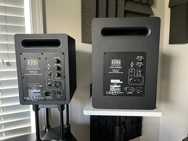 不同创作者的工作环境各不相同,Kreate系列通过贴心的设计解决了这一难题。音箱背面配备了高、低频搁架式EQ调节开关,让用户可以根据工作室的声学特性对声音进行微调,补偿因空间限制造成的声学缺陷。