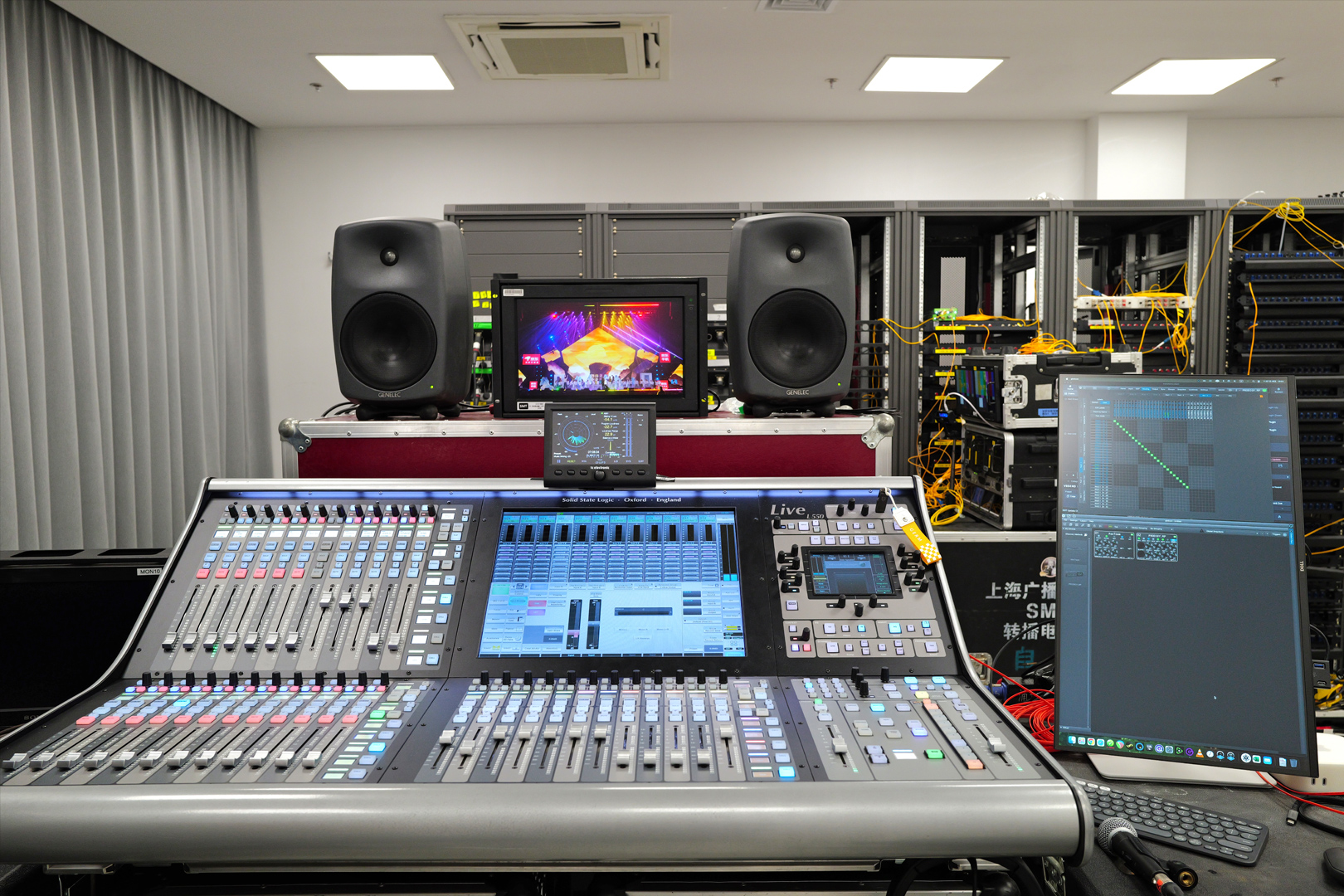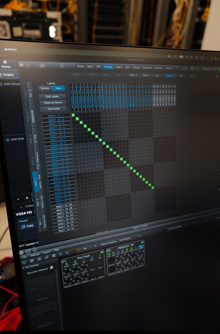 新闻中心|2025/11/13 双 L550+L650 阵容!传新科技 SSL Live 护航《京东11.11惊喜之夜》 由东方卫视与京东联合出品的《京东11.11惊喜之夜》圆满落幕,刘宇宁、范晓萱、阿云嘎、薛之谦等艺人带来一场兼具艺术与互动的视听盛典。舞台融合裸眼 3D 、智能机器人等科技元素,实现线上线下超百亿曝光,让观众在沉浸表演中解锁多重惊喜。 整场活动不仅以高水准的艺人阵容与炫酷的视觉科技吸引眼球,其幕后音频系统更是集中的技术展示。系统架构以全数字化理念为核心,从信号采集到录制输出,几乎全程无额外的 AD/DA 转换,确保声音纯净透亮,细节饱满,最大限度还原艺术家的真实演绎。 SSL Live:掌控全场 本次晚会在扩声与转播系统中全面使用 SSL Live 系列调音台。舞台监听部分采用一台 SSL Live L650,而 OB 转播系统配置了两台 SSL Live L550,分别作为主备系统运行。所有设备均使用 96kHz 采样率,保证了卓越的音质清晰度。通过光纤互联,扩声与播出系统系统实现音频、控制、回传的全面数字化同步,避免了传统模拟线路的信号损耗。 DirectOut:信号转换与互联 在信号转换部分,系统引入了两款来自 DirectOut Technologies 的设备,构建了音频网络的核心枢纽。 DirectOut ANDIAMO 负责将部分模拟音源转换为 MADI 信号输入至调音台,为非数字设备提供高品质的稳定信号转换。 DirectOut PRODIGY.MP 则作为系统的 “数字中枢” ,承担 MADI 与 Dante 格式之间的互相转换,以扩展调音台的 Dante 接口数量。 所有来自 PRODIGY.MP 的 MADI 信号均以两组同时输出,分别馈送至两张 SSL 调音台,实现信号冗余备份。确保即使主机出现故障,备用系统也能在无缝切换中继续运行,为晚会转播提供双重保障。 DAD:大容量低延迟录音与回放 在多轨录音与回放环节,采用了一台 DAD Core 256 作为核心录音主机。由于现场系统以 96kHz 采样率运行,Core 256 通过三组 MADI 信号与 SSL 系统连接,并通过 Dante 再扩展 32 路通道,实现多达 128 路超低延迟雷电接口录音与回放。 CEDAR:降噪与人声优化 为了应对大型现场环境中不可避免的噪声干扰,系统接入了一台 CEDAR DNS 8D 数字降噪单元。DNS 8D 可通过 Dante 网络无缝集成到调音台系统中,还能通过网页管理快照和多段内部侧链,针对主持人和歌手话筒进行实时降噪处理。 从 SSL 的高解析度音频引擎,到 DirectOut 的桥接能力,再到 DAD 的高带宽录音与 CEDAR 的智能降噪,本次《京东11.11惊喜之夜》的音频系统可谓一次 “全数字链路” 的技术示范。它不仅展现了现代演出制作在音质与稳定性上的极致追求,也为大型直播类晚会提供了可复制的高标准解决方案。 技术团队 音响设计:邵勇 OB 音响师:杨启明 FOH 音响师:彭昶融 Monitor 音响师:李梦晨 音响团队统筹:魏文博 技术支持:传新科技 门齐、杨泽承、饶斯鹏 音响技术:杨佳兴、李子涵、王子谕、杨秉均 音响工程:上海浦诺文化传播有限公司 更多资讯请关注传新官网 www.dmtpro.com.cn 和传新微博 weibo.com/dmtpro 分享: