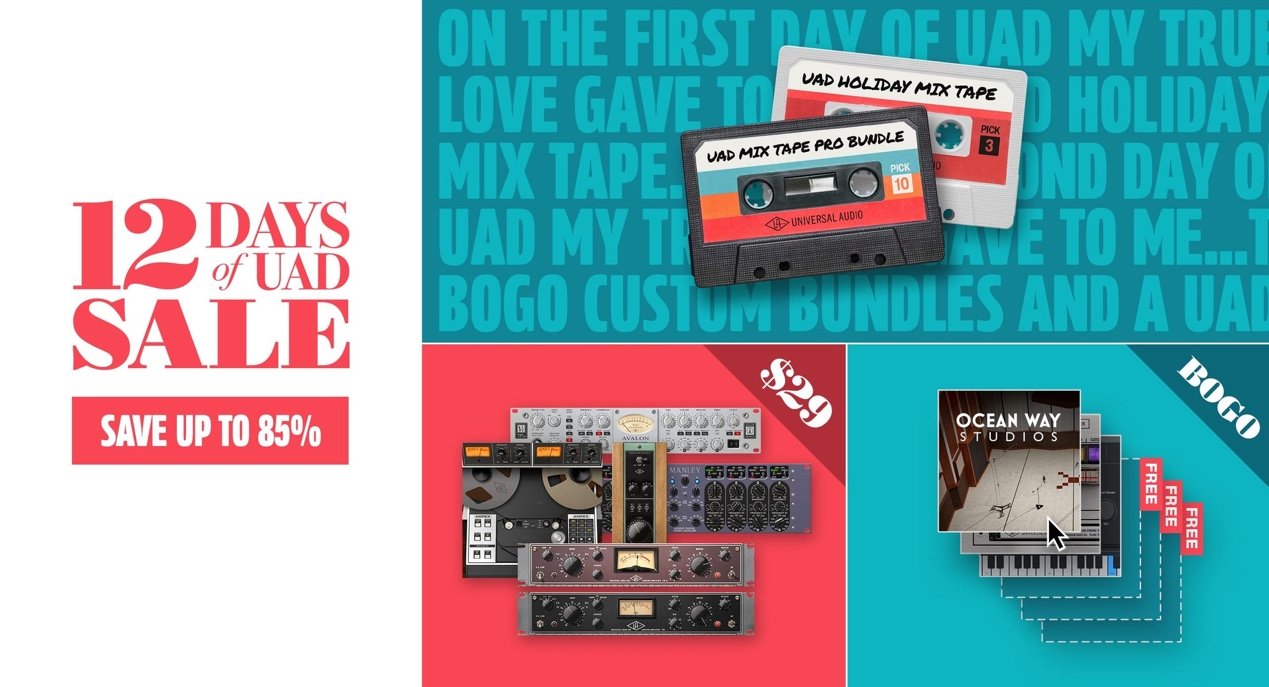 新闻中心|2025/11/14 UAD 插件第二波促销来了,更多新品加入! UAD 12 天促销活动强势来袭, UAD 插件全线产品最高可享 85% 折扣。 新品:UAD Holiday Mix Tape Bundle 从 UA 精心挑选的 30 款备受喜爱的插件中,选择 3 款 UAD 插件,打造你专属的节日混音带 —— 仅需 358 元(相当于每款插件只需 100 多就能入手)。选择你的必备插件,塑造你的音色,打造独一无二的混音作品。 可选插件列表一览: https://www.uaudio.com/products/uad-holiday-mix-tape-bundle 小贴士:选择插件时建议勾选 “Hide Owned” ,可隐藏账号中已拥有的插件,避免重复购买~ 新品:UAD Mix Tape Pro Bundle UAD Mix Tape Pro 可立即升级您的录音室 —— 让您以 728 元的超低价格选择 10 个插件。从 50 个在无数唱片中出现过的 UAD 传奇插件中挑选,打造您完美的混音/制作套装。 可选插件列表一览: https://www.uaudio.com/products/uad-mix-tape-pro-bundle 每款插件右上方均标注了的产品所支持的插件格式: 如果仅有 “Apollo” ,代表您的账号系统中需有 Apollo / UAD-2 硬件设备方可激活;“Native” 代表插件可以在 DAW 直接运行,无需 UA 硬件。 Custom Bundles 买赠活动 Custom Bundle 是一个自选 UAD 插件的套装,若您想要的插件不在其他自选套装的列表之中,请选择 UAD Custom Bundle —— 可在几乎整个 UAD 插件库中选择对应数量的插件。 如新发布的 Ocean Way Studios Deluxe 插件现在售价为 249 美元,通过 Custom bundle 去购买显然是更划算的选择! UAD Custom 3 Plus Bundle,共计可选 6 个插件,限时 1458 元。 UAD Custom 6 Plus Bundle,共计可选 6 个插件,限时 2548 元。 UAD Custom 10 Plus Bundle,共计可选 6 个插件,限时 3648 元。 可选插件列表一览: https://www.uaudio.com/products/uad-custom-3-plus-3-bundle * 若您 UA 账号中没有 UAD-2 / Apollo 设备,您只能选择支持 Native 的插件。 新品:UAD Best of 2025 Bundle 包含四款全新 UAD 插件,仅售 1088 元 UAD Woodrow '55 Instrument Amplifier 在您的 DAW 中,完美模拟经典的 50 年代美式 Tweed 音箱。 A-Type Multiband Dynamic Enhancer 聆听标志性的 Air、Excite 和 Expand 效果,这些效果曾被 Queen、Stevie Wonder、The Cars、Fleetwood Mac 等众多音乐人用于人声录音。 Anthem Analog Synthesizer 雕琢浑厚的低音和强劲的主音,为您的歌曲增添饱满的模拟质感。 Ocean Way Studios Deluxe 全新升级,将您的人声、鼓、吉他等乐器置于 Ocean Way Studios 的传奇录音棚中。 新品:Ocean Way Studios Deluxe 走进这座创造历史的录音棚,体验从头到尾完美还原的每一个细节。 将您的人声、鼓、吉他等乐器置于 Ocean Way Studios 的传奇录音棚中。 在 Bill Putnam Sr. 的原汁原味混响室中,让您的声音焕发活力。 使用 Ocean Way 的经典 re-mic 设置,重塑您的音轨。 使用数百张标志性唱片中使用的模拟调音台和周边硬件,塑造您的声音。 借助增强的 Retina 图形和用户界面,置身于世界一流录音棚的控制室。 同时包含适用于 Apollo 和 UAD 硬件的 Ocean Way Studios 原版插件。 将世界知名录音棚至于您的 DAW 中 Ocean Way Studios Deluxe 远超原版屡获殊荣的 UAD 插件,为您的作品赋予音乐史上极具传奇色彩的录音室、混响室和麦克风的音色。凭借 UA 独有的动态房间建模技术,您现在可以轻松添加与 Ray Charles、Frank Sinatra、Whitney Houston、Radiohead 和 Beck 等音乐人录音中相同的空间感、立体感和音色。 * 上文中使用的姓名仅供历史参考,并不表示对 Ocean Way Studios Deluxe 的认可。 UAD Essentials Edition Bundle 现在只需 358 元,你便可拥有传奇的 Teletronix LA-2A 压缩器的三个版本,一系列经典的 Pultec EQ、Oxide Tape Recorder 等 12 个 UAD 插件(如果单独购买每个插件,总价值 1,493 美元)。您的制作将在专业模拟声音方面取得巨大飞跃——无需 UA 硬件。 包含插件: Verve Analog Machines Essentials PolyMAX Synth Century Tube Channel Strip Pultec Passive EQ Collection(3) Teletronix LA-2A Classic Leveler Collection(3) Galaxy Tape Echo Pure Plate Reverb Oxide Tape Recorder 新品:UAD Signature Edition V3 V3 版本中新增以下插件:1176 Classic FET Compressor、A-Type Multiband Dynamic Enhancer、Anthem Analog Synthesizer、Ocean Way Studios Deluxe、Teletronix LA-2A Tube Compressor、UAD Showtime '64 Tube Amp、UAD Woodrow '55 Instrument Amplifier。 若按单个购买插件价值超过 9,000 美元——UAD Signature Edition 是 Universal Audio 无可匹敌的 Native 插件包(共包含 60 多个 UAD 插件)。 UAD Select Bundle 使用新 UAD Select Bundle 构建您梦寐以求的插件合集!从 80 个畅销的 UAD 插件和虚拟乐器列表中进行选择,构建您梦寐以求的合集。 当你需要为你的 UAD 插件库增加新工具,切记不要一个一个去单独购买!因为选择 UAD Select Bundle 更划算! 可选插件列表一览: https://www.uaudio.com/products/uad-select-3-bundle 新品:UAD Ultimate 14 使用超过 120 款 UAD 插件,将您的 DAW 变成充满模拟感觉的录音棚,同时享受超值优惠 —— 不到 6000 元! 使用备受欢迎的 UAD 插件进行录音和混音,这些插件来自 Neve、Teletronix、Pultec、Studer、Lexicon 等数十家厂商。 使用真实模拟经典录音棚硬件的插件,为您的 DAW 混音增添浓郁的模拟音色。 * 您的 UA 账号中需拥有 UAD-2 / Apollo 设备方可激活此套装。 新品:UAD Complete 4 以超值优惠获取几乎完整的 UAD 插件库,限时 10948 元。 使用来自 Neve、API、SSL、Fender、Lexicon、Ampex、Helios 等数百家厂商的畅销插件进行录音和混音。 使用真实模拟经典录音棚硬件的插件,为您的软件混音增添浓郁的模拟音色。 * 您的 UA 账号中需拥有 UAD-2 / Apollo 设备方可激活此
