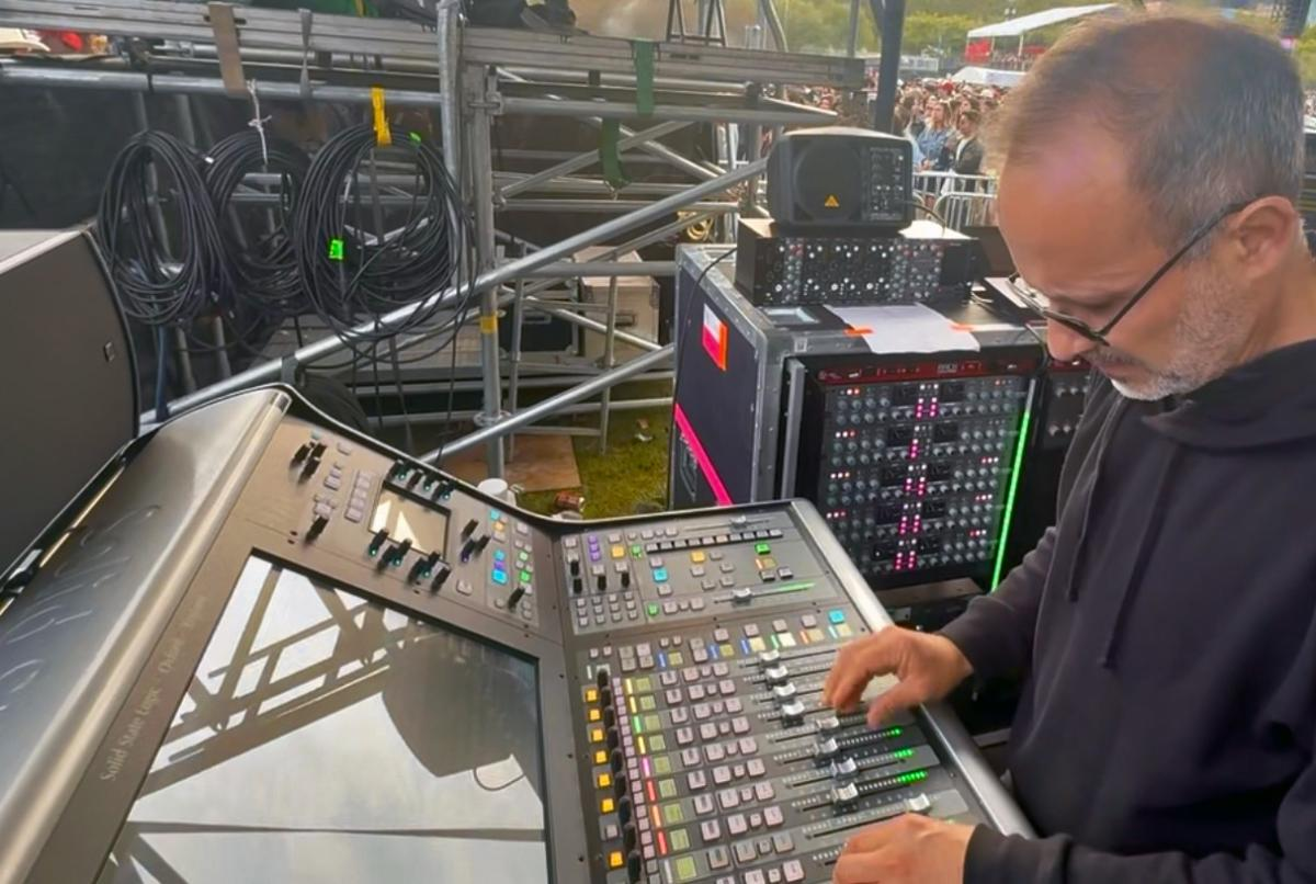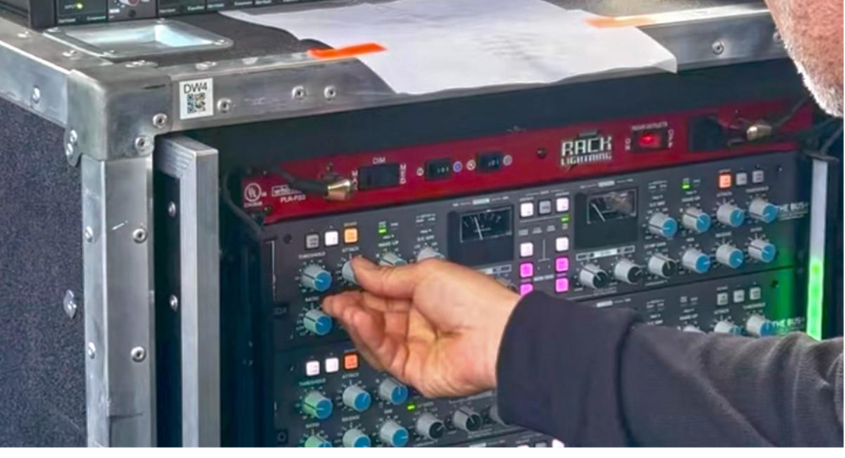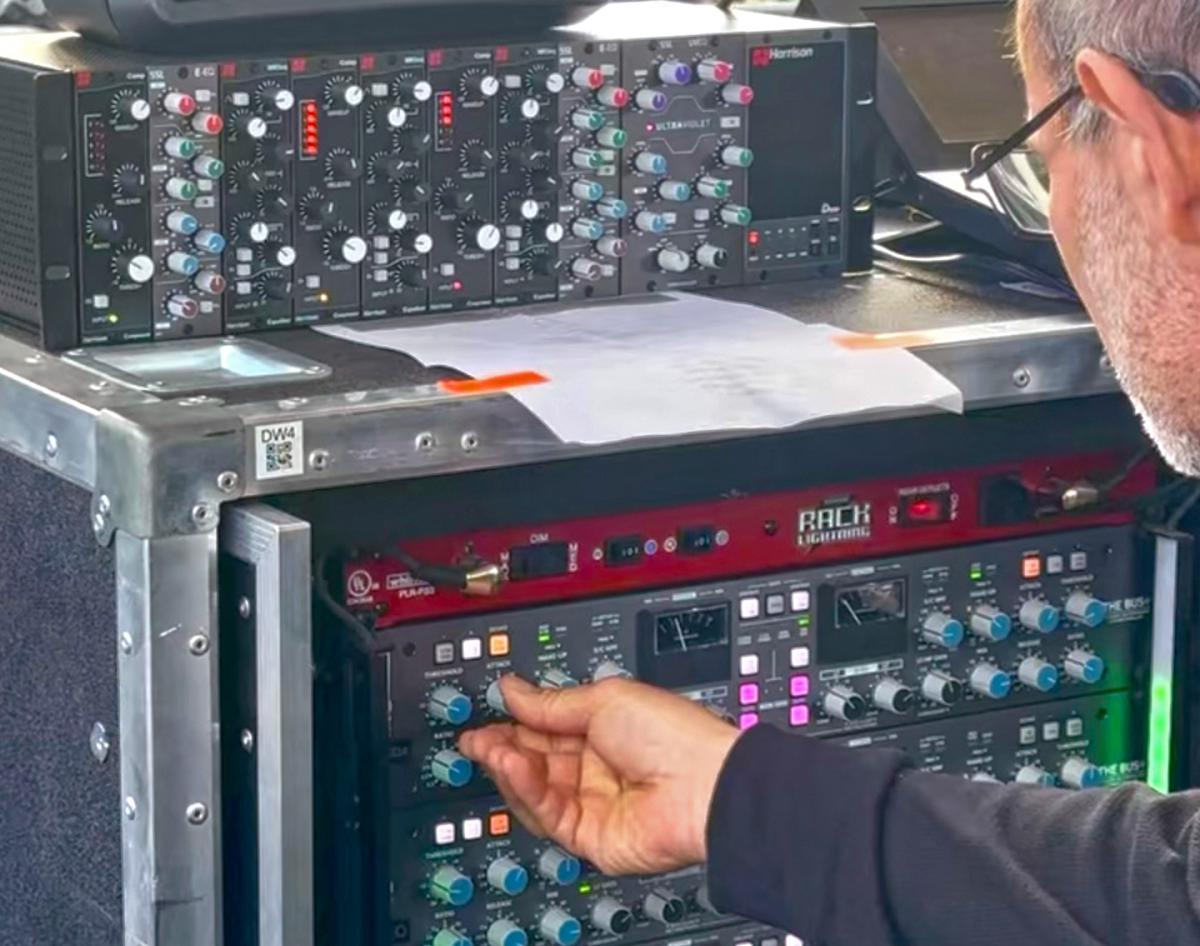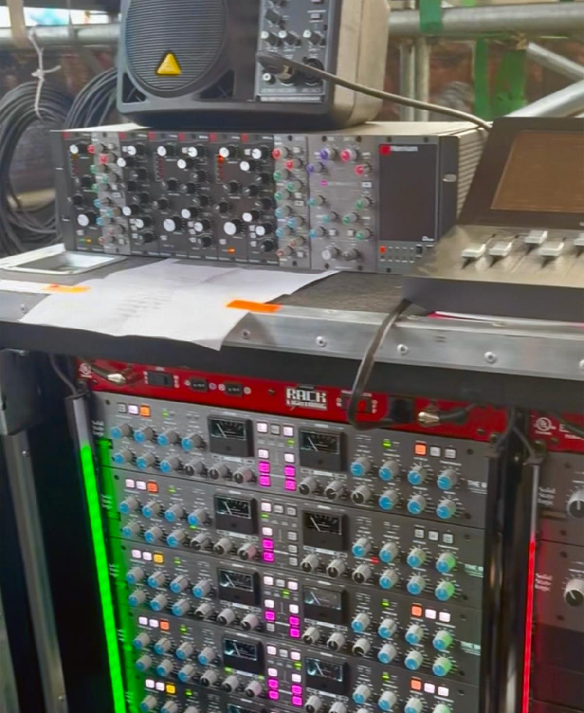资深 FOH 工程师 Fernando Guzman 过去几年一直随格莱美获奖墨西哥音乐(Música Mexicana)明星 Peso Pluma 巡演,与乐队一同在北美、墨西哥及拉丁美洲的体育馆和音乐节舞台表演。今年早些时候,Guzman 对其现场扩声环节的外置模拟信号处理机架进行了升级,新增了一台集成 D510dante 接口的 Harrison Audio D510rack 500 系列机架,并为其配备了 Harrison 与 Solid State Logic 模块。