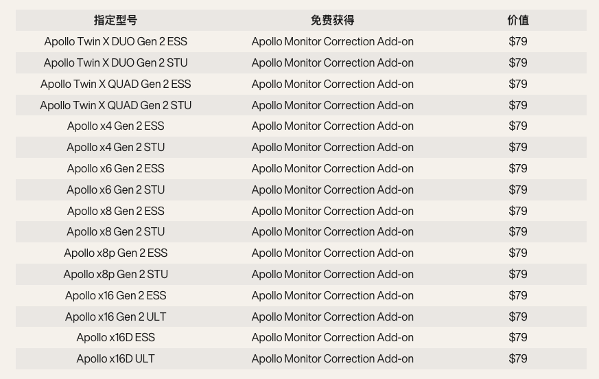 新闻中心|2025/12/01 购买 Apollo X Gen 2 音频接口,即可免费获赠 Sonarworks Apollo Monitor Correction Add-on 限时优惠 —— 2025 年 11 月 25 日至 12 月 31 日期间——购买指定型号的全新 Apollo X Gen 2 接口,即可免费获赠价值 79 美元的 Sonarworks Apollo Monitor Correction Add-on ! 哪些Apollo X Gen 2接口参与本次促销活动? 活动期间从传新科技 UA 授权经销商及传新商城处购买任何新款 Apollo X Gen 2接口,即可免费获赠 Apollo Monitor Correction Add-on,具体产品请见下表: 我刚购买了上面提到的 Apollo X Gen 2 音频接口——如何获得免费的 Apollo Monitor Correction Add-on 许可证? 注册新的 Apollo X Gen 2 音频接口后,登录 UA Connect,您应该会在 Apollo & UAD-2 选项卡上看到 Apollo Monitor Correction Add-on 的新图标。点击该图标上的按钮即可查看您的专属兑换码。按照弹出的对话框中的步骤,在 sonarworks.com 注册您的兑换码。 同期促销活动仍在进行,不要错过 兑换和使用免费的 Apollo Monitor Correction Add-on 是否需要其他软件或许可证? 是的,要兑换免费的 Apollo Monitor Correction 插件,您必须拥有: lUA Connect v1.8.2 或更高版本 要使用 Apollo Monitor Correction,您必须拥有: UAD Software v11.5.1 或更高版本(可在 UA Connect 中免费获取) UAD Console v1.2.1 或更高版本(可在 UA Connect 中免费获取) SoundID Reference 对应产品许可证(可通过 sonarworks.com 另行购买) 使用 Apollo Monitor Correction 和 SoundID Reference 是否需要网络连接? 是的,需要网络连接。SoundID Reference(以及 Apollo Monitor Correction Add-on)没有离线模式,许可证必须在联网状态下激活。激活完成后,软件可以在离线计算机上使用最多 10 天。 更多信息: https://help.uaudio.com/hc/en-us/articles/43738867538196-FAQ-Apollo-X-Gen-2-FREE-Sonarworks-Apollo-Monitor-Correction-Add-on-Promo 更多资讯请关注传新官网 www.dmtpro.com.cn 和传新微博 weibo.com/dmtpro 分享:
