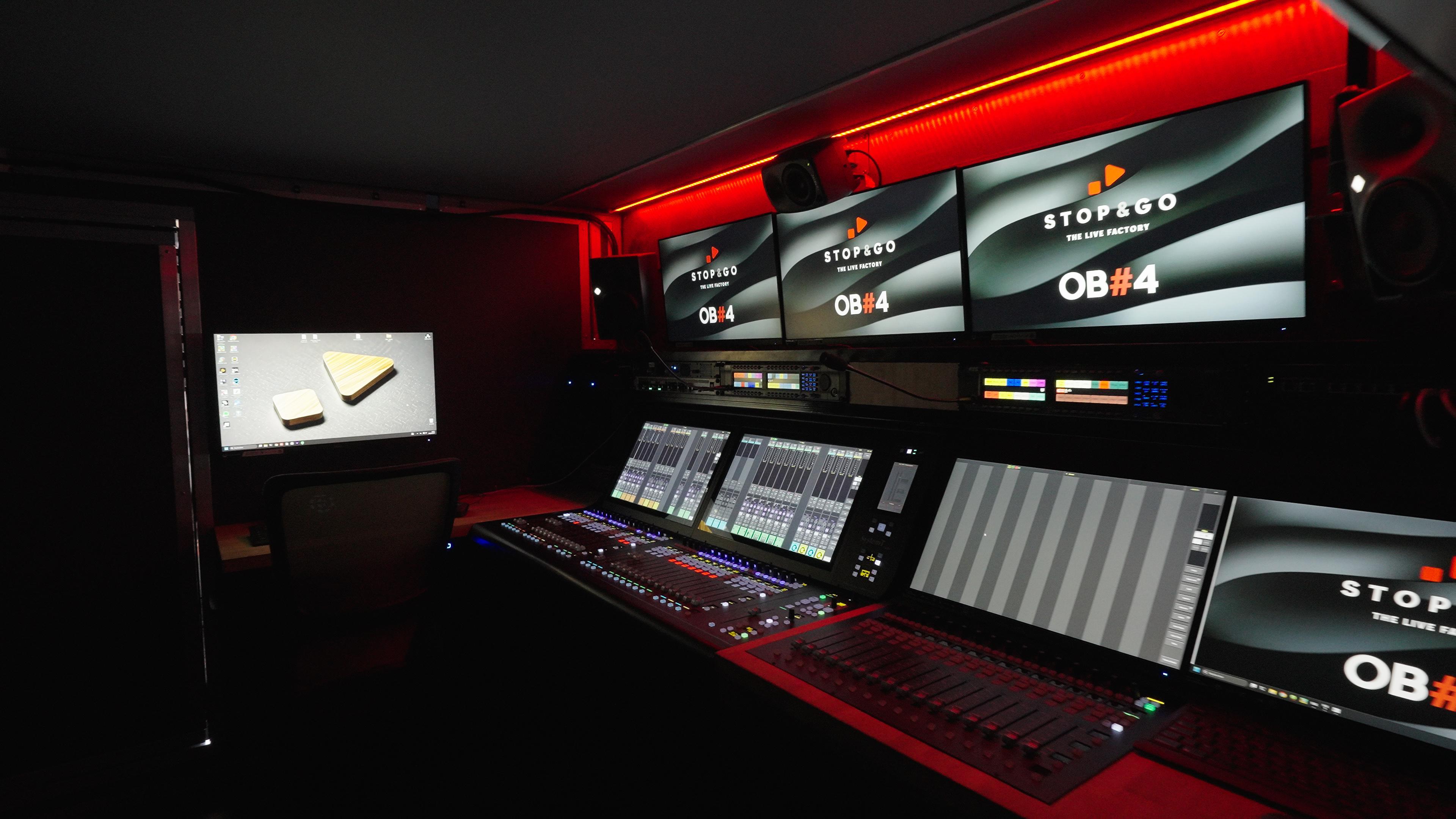 Stop & Go 公司成立于 2010 年,总部位于图卢兹。该公司表示,定制这两款转播车是为了在快速变化的市场中保持灵活性。OB6 转播车于 2025 年 4 月投入使用,是一款传统拖车式转播车,配备了全尺寸 48 推子 SSL System T 音频调音台,专为高端活动定制设计。而 OB4 转播车则完全不同,它于 2025 年 9 月首次亮相直播场景,通过 32 推子 S400 调音台为 Canal + 频道提供法国橄榄球甲级联赛(Top 14)的转播服务。